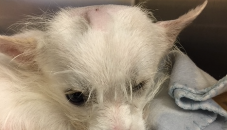 He no longer cries from his headaches, and he will bark just like any other dog when he wants your attention. He loves being held and will curl up in your arms all day if you let him. When one of our Staff came in early to check on the dogs, she immediately noticed something was wrong with Angel. When she picked him up to see what was wrong, he let out a yell and did not want to be handled. She then noticed the hydrocephalic fluid bump on his head was deflated and he was damp all over. I was contacted, and we immediately took him to the ER.