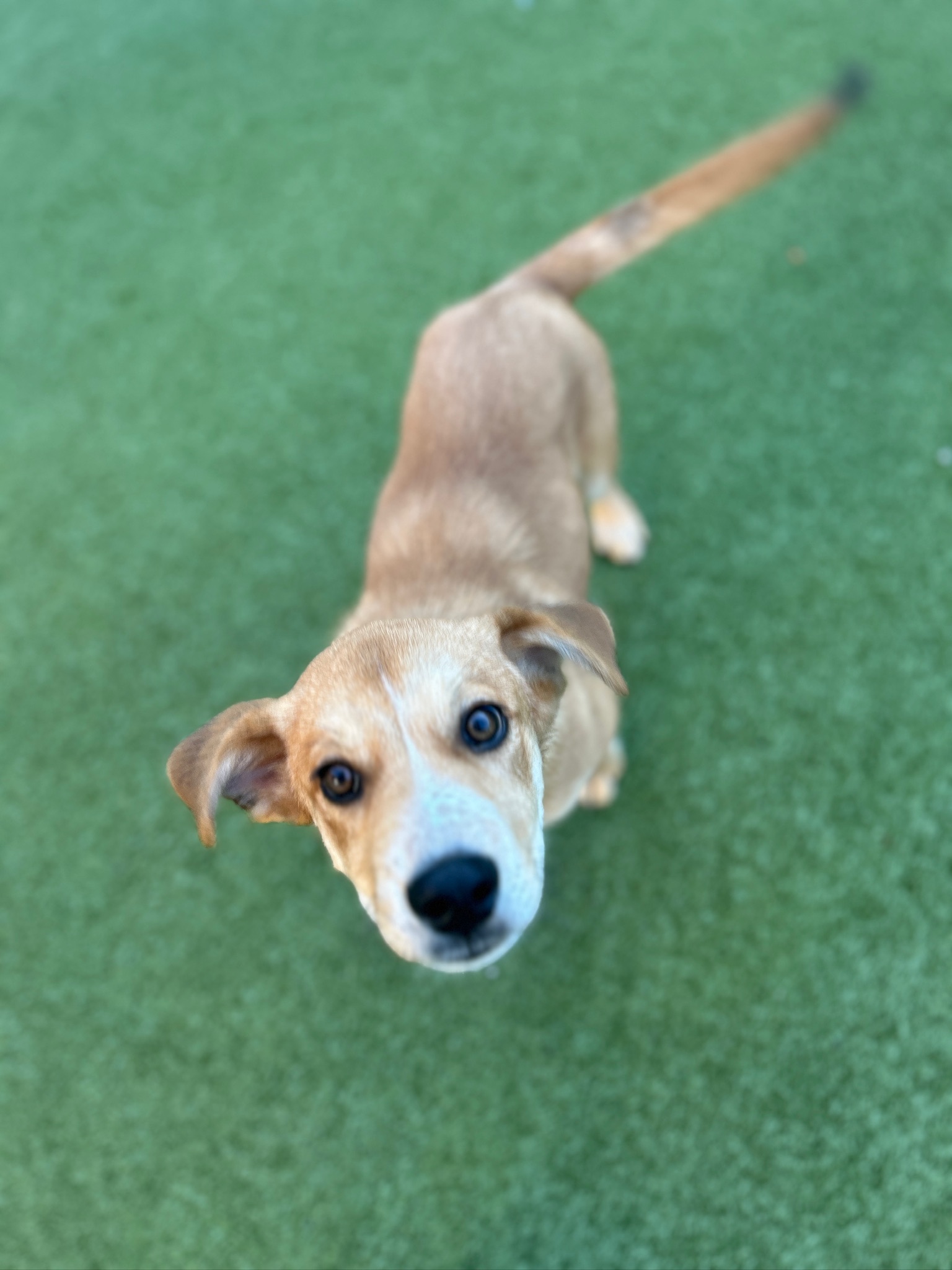 Not much fazes this adorable boy. With that precious underbite, we now believe he may be a Boxer/Lab mix. He is growing like a weed and will make an incredible family dog once we finally get this infection behind him.