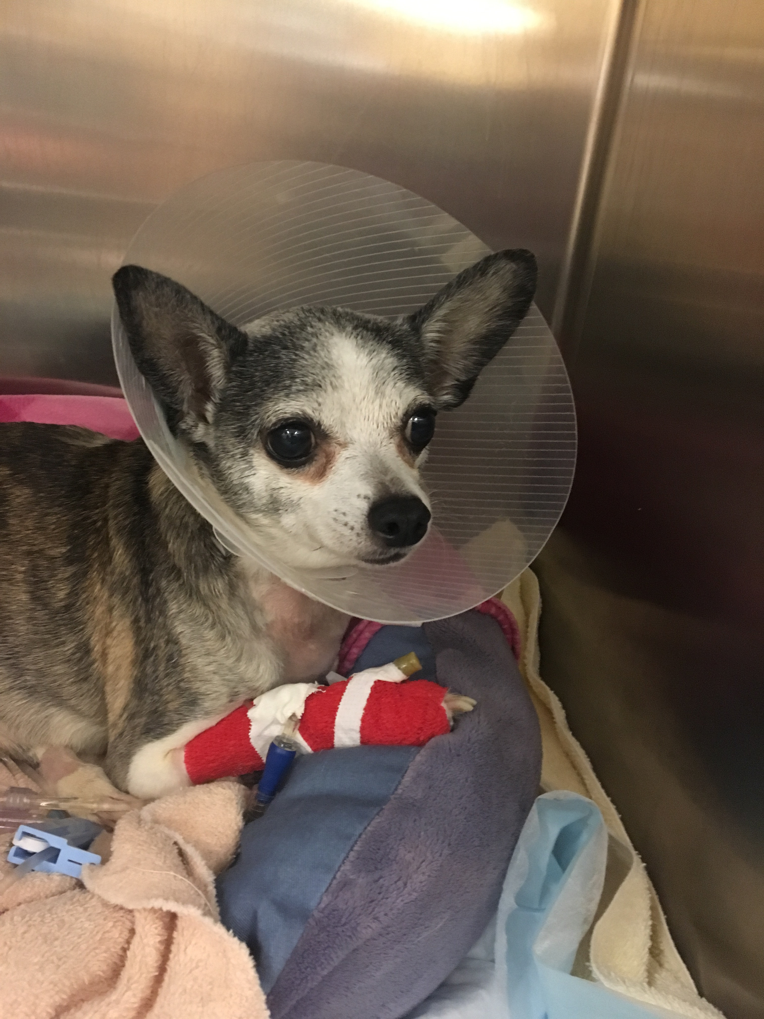 I am happy to report that we finally have some good news for Barney. This adorable pup has had the hardest time recovering from the massive infection he had. We did culture on top of culture on top of culture. Each time we came up with something different growing. The antibiotics we were using for one bacteria was not working for the others. Some of the antibiotics were dangerous for his kidneys, so we had to take extra precaution to protect his organs from further damage. This has been a vicious cycle of one step forward and two steps back. Through it all, Barney has been the most precious little Angel that had no earthly idea his Life was leaning toward not surviving this.