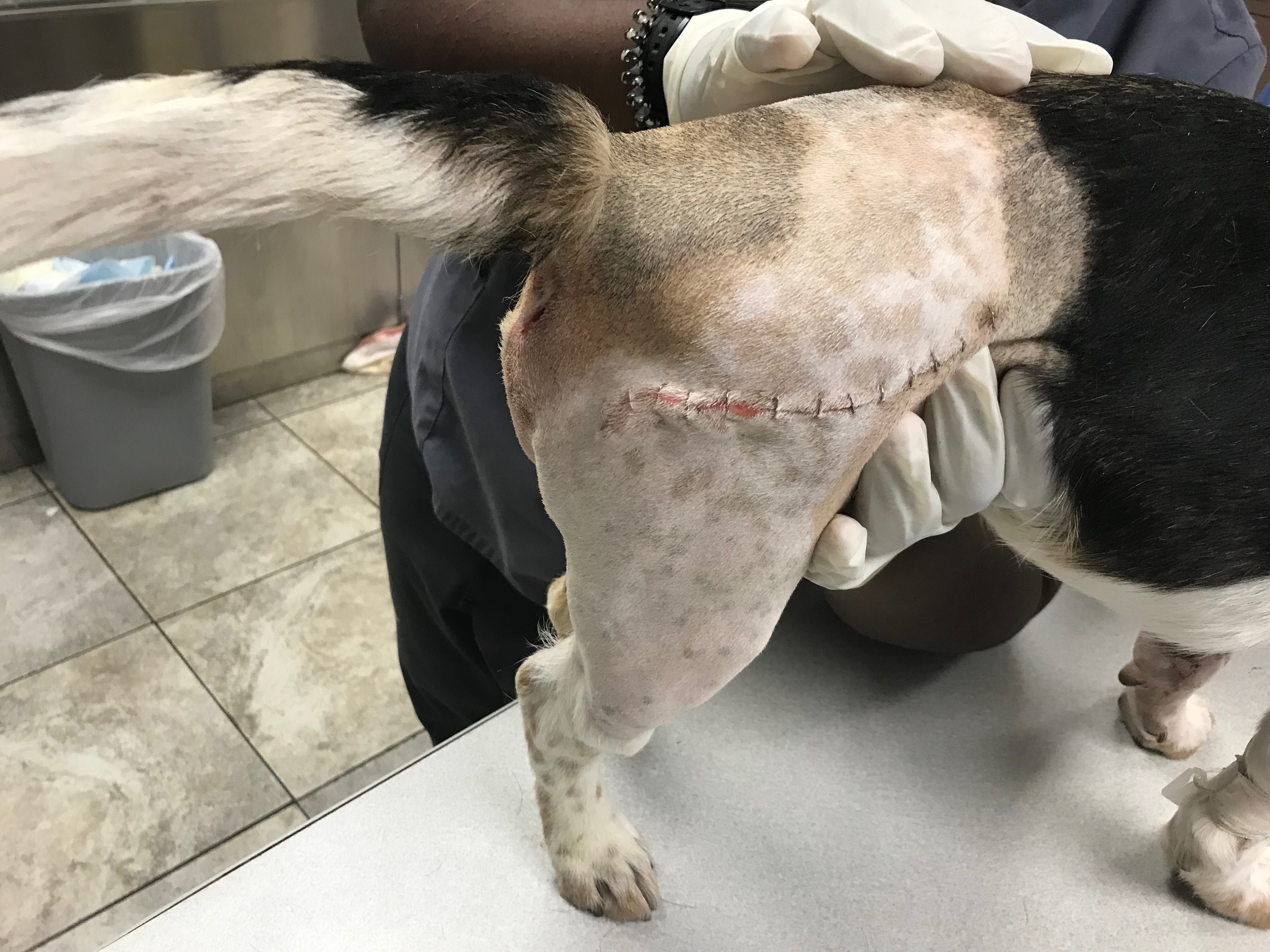 Barney has the best attitude of any dog that has endured so many procedures. He never complains and is easy to do his range of motion exercises. He goes on walks but is still on restricted activity. Barney's legs are never going to be perfect, but his personality is about as perfect as you could ever imagine. He is a young pup that has the rest of his Life to run and play once he is fully healed.