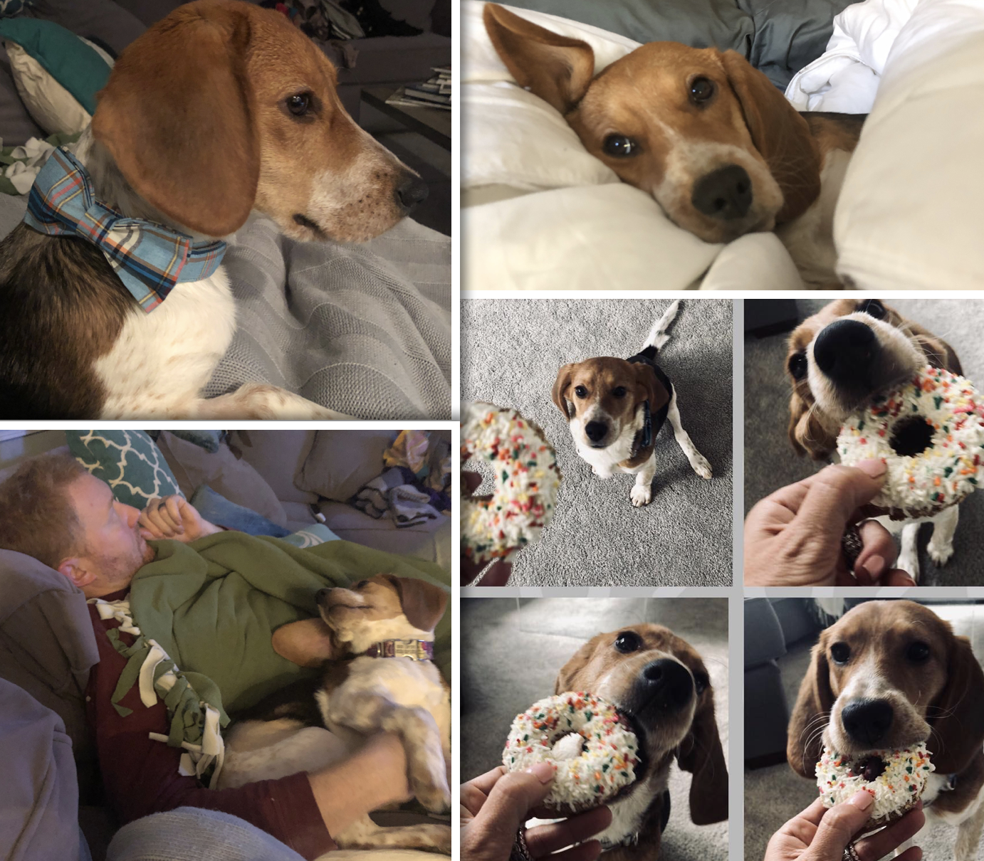 Now for the best news of all, Dr. Kerry Rissetto and her Husband Dr. Jeff Davis, DVM will be adopting sweet Barney. They started out fostering him and soon realized he was the one. This will be the second Beagle they have adopted from us. We could not be happier for Barney and his beautiful Family. As you can see from the pictures, Barney is quite smitten with Dr. Davis. Thanks for helping us with this cute pup they are now calling Bernard.