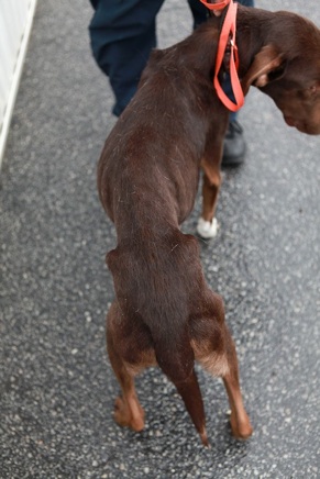 ATLANTA, GA....Sweet CAROLINE was abandoned at an apartment in Atlanta, GA. The Landlord called Dekalb County Animal Control to come and check out an abuse case in his complex. What they found was sweet Caroline barely able to move with her companion that had starved to death with his head laying in an empty food bowl. As you can see from her nails she has not been outside or able to get around in some time. The authorities have found the person that had once rented the apartment and filed criminal charges against the person for Animal Abuse. These innocent dogs have been without food or water for God knows how long. Long enough for one of them to starve to death and die. Can you imagine to fear and sadness they felt being able to hear people around them but not having anyone come to care for them. I do not know if they barked and no one heard them or if they just got too weak to bark. How Caroline is still alive is a testament to her will to live. She is sweet and so loving. She is a little bit timid but time will change all of that when she realizes we are here to help her get well. She is at our vet being treated for starvation, dehydration, parasites and slight anemia from lack of food. Her blood and kidney panels are not terrible but indicate what we expect to see when an animal has gone so long without food or water. She will be at the vet slowly gaining her weight back while we are monitoring all of her organs to make sure they can handle food and water since she has gone for so long without it. Caroline will be a beautiful dog once we get her built back up again and a wonderful dog for a young family. She has no aggression at all and is sweet and loving to everyone. We think she is approx. 2-3 years old.