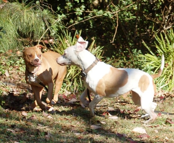 Tucker is back from training and ready for his new home. He is the sweetest dog. We love this special boy. He and Peach Pit love to play.