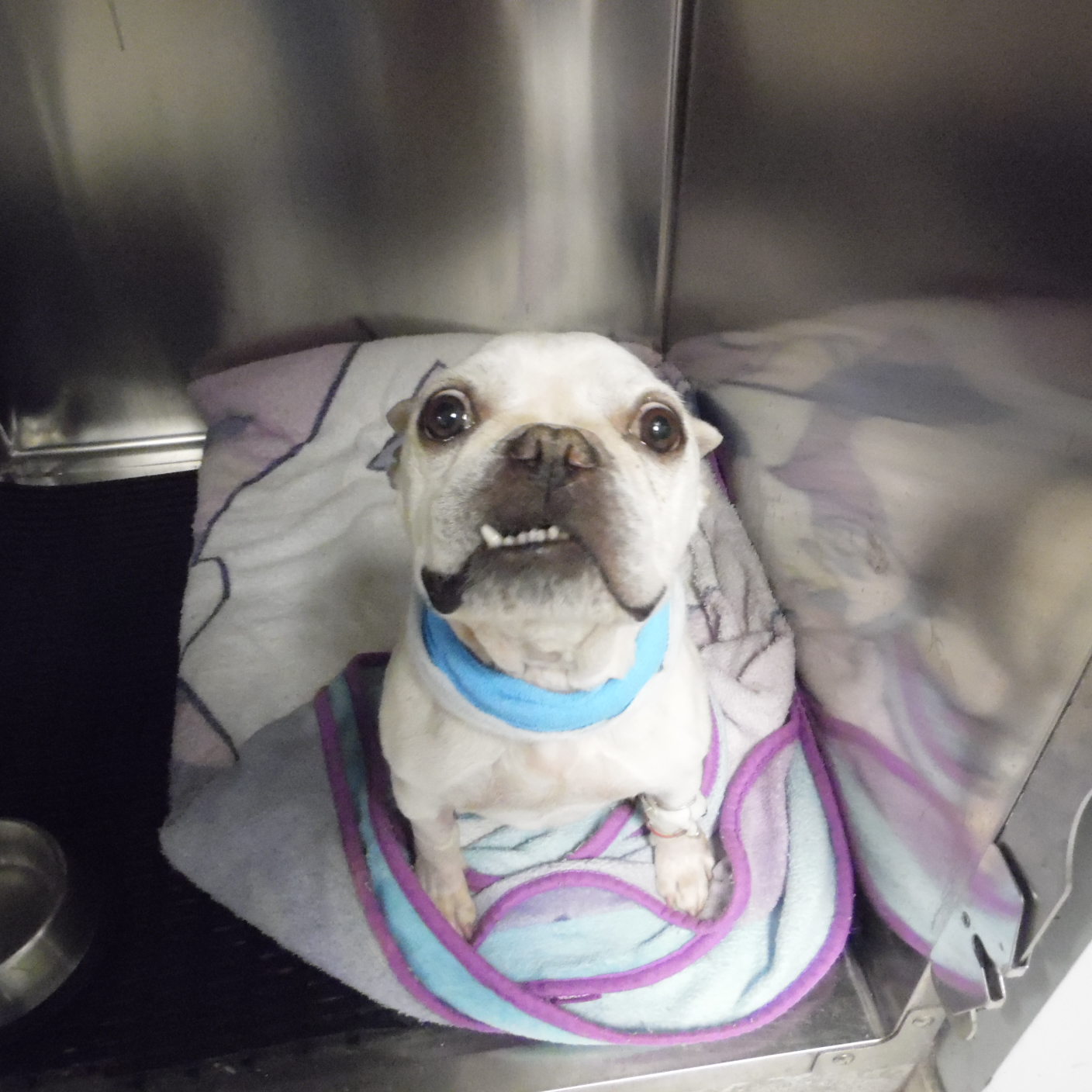 I am happy to report that adorable Charlie was finally able to come out of his Oxygen Chamber and stay out. The biggest issue was Charlie is a Social Butterfly and would get overly excited whenever anyone came near his kennel, or he was out for potty breaks. Charlie felt so good that all he wanted to do was run around and play until he was so out of breath that he had to go back on Oxygen. This past week we have attempted to keep him calmer while allowing him to be out of the hospital.