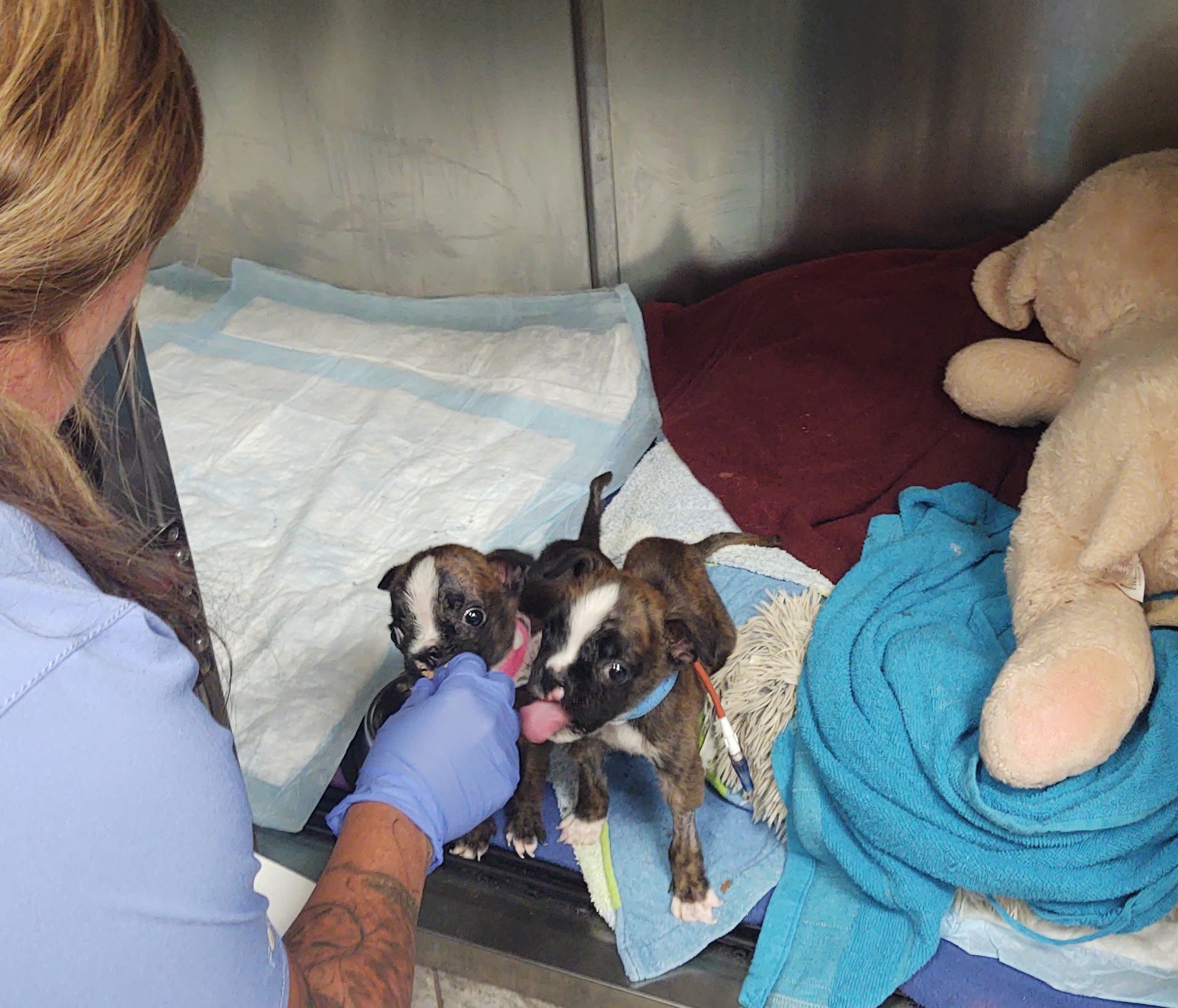 Each pup has a Special Vet Tech that is responsible for their feedings which are critical. They report directly to the ER Vet to make sure nothing is missed. Both pups have aspirated several times, but Chip seems to be the worst. With trial and error, the Vet. Tech in charge has managed to develop a food formula that is working. I have tweaked it further to make sure they are getting the healthiest food possible.