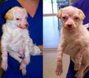 Adorable DOCKER is still very sick. Because his immune system was so compromised, he was prone to get everything imaginable. We are finally getting his upper respiratory infection under control. His skin has revealed he has a MRSA staph infection all over his skin which means it is in his bloodstream. He is on a lot of specific antibiotics for the issues we are dealing with. We finally have his fever under control. If we hadn’t gotten him when we did, he would not be here today. He is the sweetest little pup that has really been through it. He will be in the hospital for several more weeks while he is healing. He is getting lots of love and affection while he is healing.