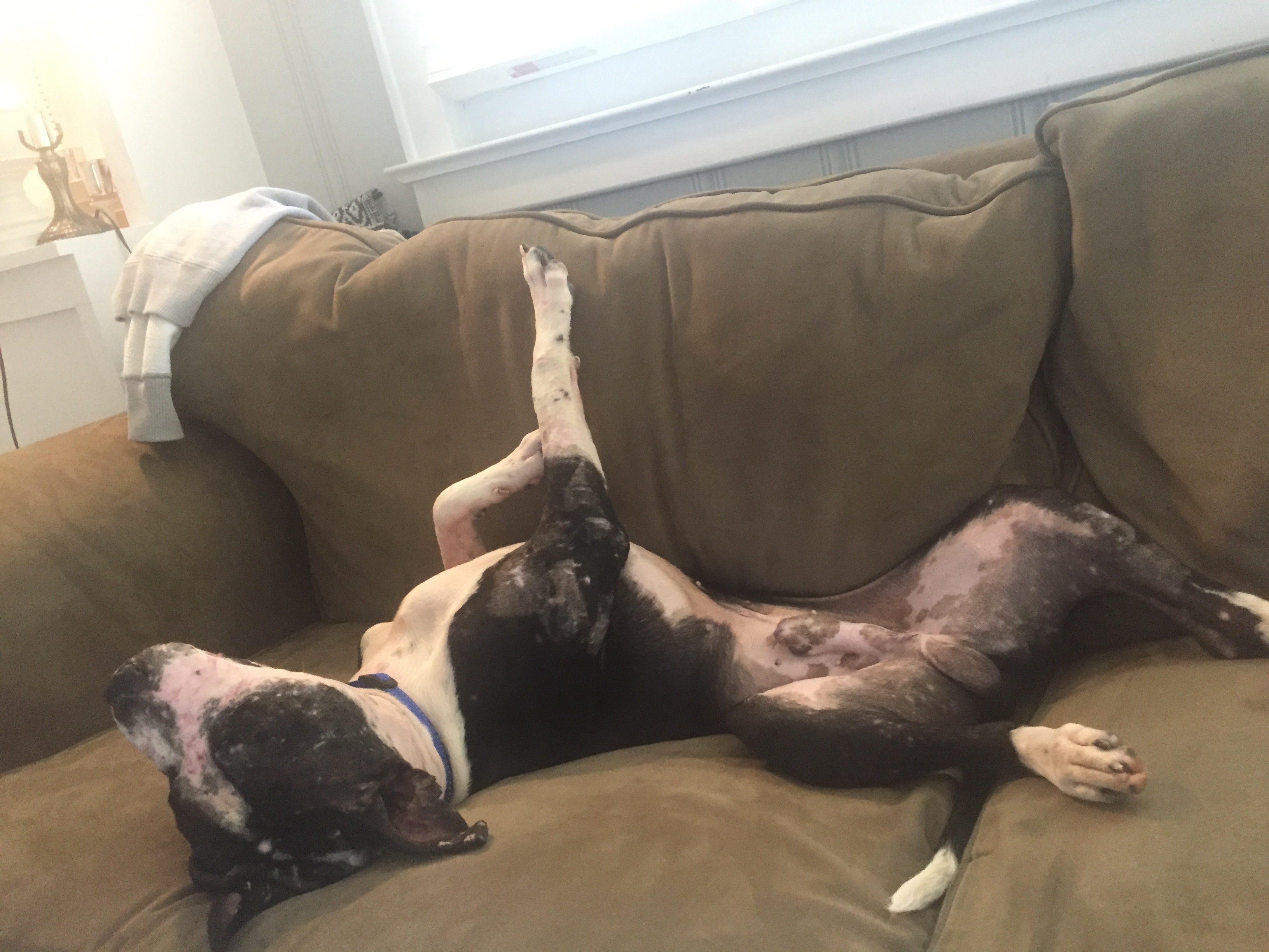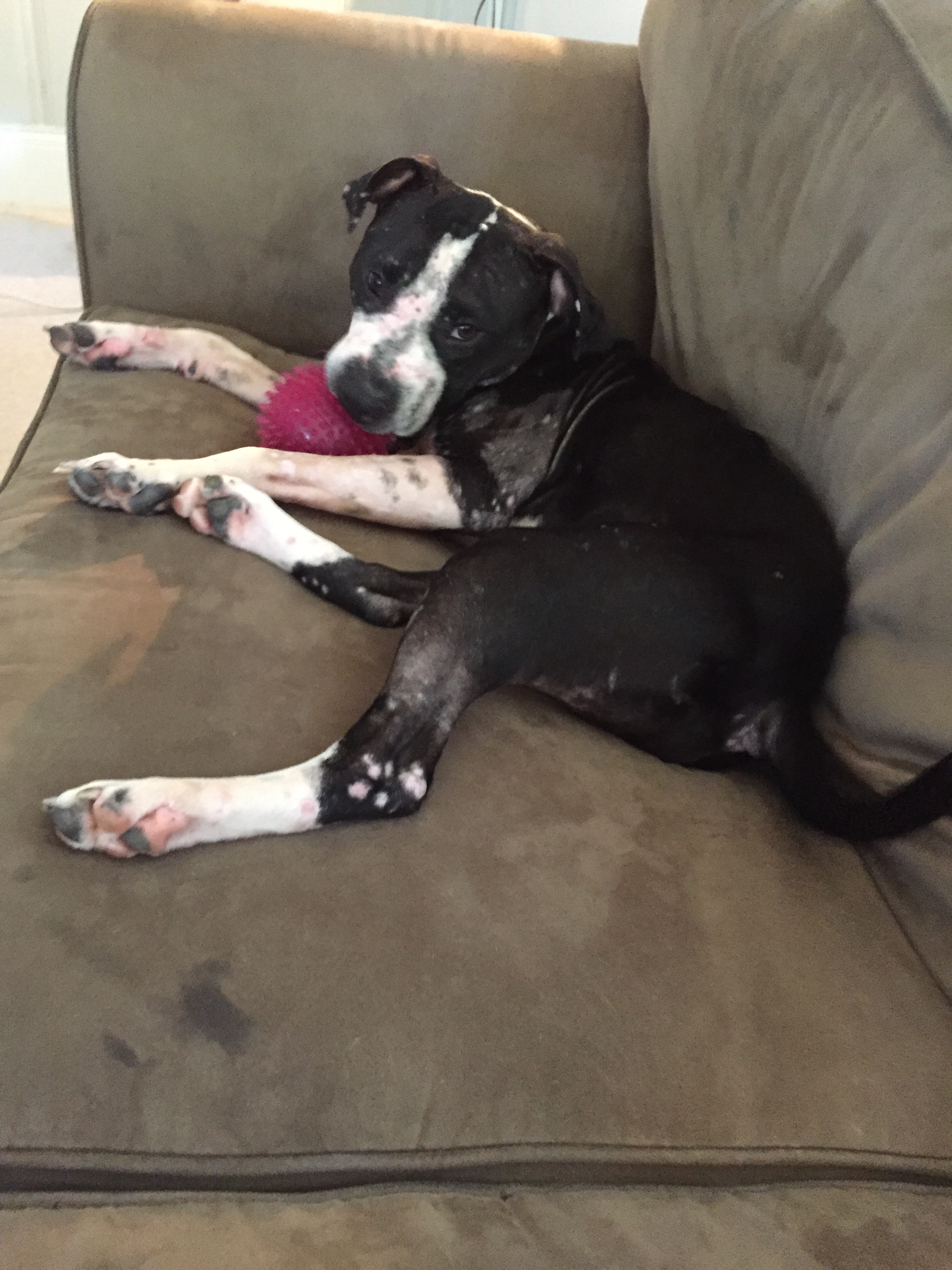 Domino went from being tortured to being loved unconditionally. The scars on his body are nothing more than a reminder of the Life he had and how Life can change in a heartbeat. We love this sweet pup and could not be happier for his new Family and Domino.