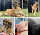 I also find it hard to believe that he ever got up with the injuries Frank had to his femur. His femur was shattered and displaced. His leg needed to be amputated, and he required extensive rehab since he was an 80 lb. dog. No one wanted to do the amputation or the required rehab. We had Frank taken to CVRC in Charleston, SC, to have his leg amputated and rehab begun.