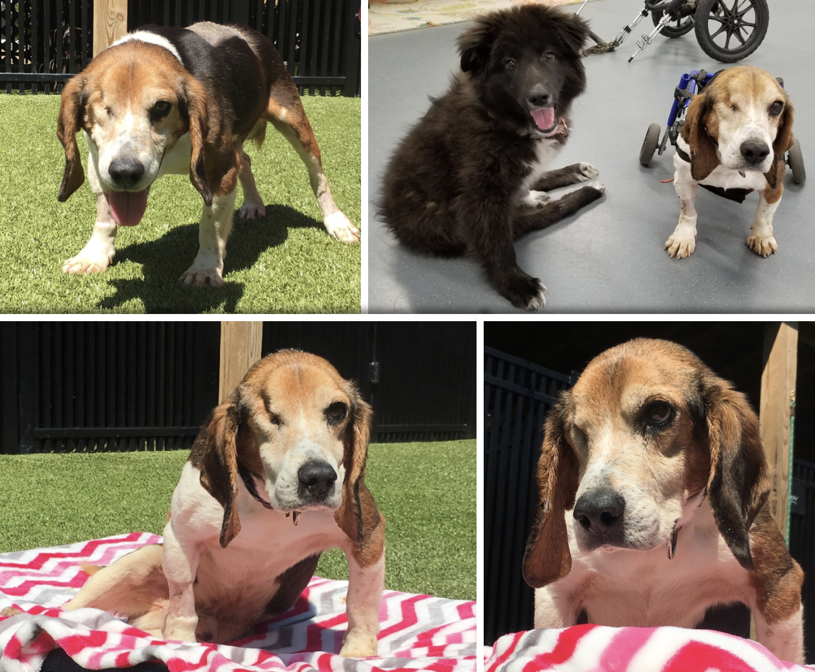 Our World changed the day we rescued Jack. He was starved and only had one eye. He had wandered up to someone's home, barely able to stand in Virginia. We were rescuing a hydrocephalus puppy and agreed to take Jack to give him a chance. Jack's Thoracic area had been crushed in his spine. It looked like someone had hit him with a bar across his back. We took Jack to the ER, did an MRI, and then did the surgery. Jack never regained his ability to walk and soon lost his ability to use the bathroom without us expressing his bladder and bowels.