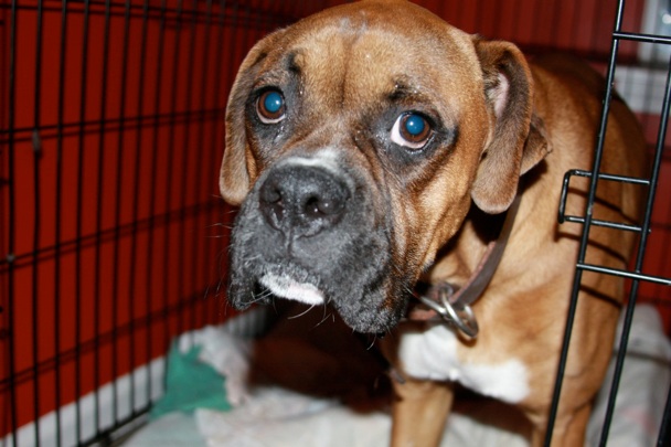 This incredibly sweet 2 year old boxer was hit by a car in Camden, SC and left to die. A good samaritan picked him up and brought him to Animal Control in Camden, SC. He was x-rayed and it was determined he had a fractured femur right above the joint. He would definitely require surgery but no one would step up for him because they couldn’t afford the surgery. The shelter just fell in love with this wonderful boy. If no one stepped up to do the surgery, they were going to have to euthanize him. No one stepped up and we could not risk him being put down. This dog has wagged his tail from sun up to sun down. He has never been anything but sweet. He will give you kisses, even with a broken leg that hurts. He has undergone surgery and a plate was put in. He is uncomfortable but on the mend. Julius gets along with everyone. He is fine with other dogs and will be available for adoption once he has healed. This is one great dog that will make a wonderful addition to any family.