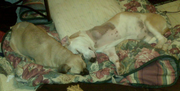 Lexus is acting like nothing has ever happened to her. She and her buddy Daisy are joined at the hip. We have decided they will have to be adopted together because they give each other such wonderful support.