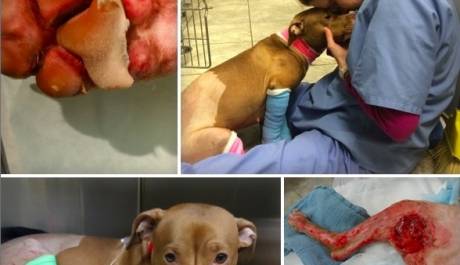 Sweet Muggs has been the best patient. I can't even begin to tell you how painful 2nd and 3rd degree burns are. Our sweet girl is sedated and comfortable during all of the surgical procedures. We are now only having to do one bandage change a day. Most of the burns have declared themselves. We only have a few areas that we are not sure if the tissue will completely die or regenerate healthy tissue. The areas that have become necrotic already have been removed. We are prepared to do skin grafts in the larger areas once the edges have become viable. We have to have healthy tissue to join healthy tissue or the graft will not take. The best news of all is that we think we have saved most of the pads on her feet. Only one foot is still giving us problems. The pad has not yet declared itself. We keep cleaning and bandaging and doing all we can to create an environment where the pad is healthy and viable enough to grow and granulate. Because Muggs has so much dead tissue that is exposed she has to stay in Critical Care to prevent infection from entering the wounds. The next two weeks are just as important as the first week. We have to keep her body fluids regulated and her wounds clean and viable. So far we have been able to keep her infection level down. That is only because of the extra caution we are taking and keeping her in a controlled environment. All the wounds on her body are vulnerable to Staph Infections. We are taking every precaution possible to keep that from happening. We will post another update in a couple of days once we get more of her bloodwork back and more tissue has either died or started to regenerate. Please, keep our dear girl in your prayers. Muggs daily bills are extremely costly. She is where she is because this is the best place for her to get the best outcome. That comes at a high price even after our big discount. PLEASE, help us as much as you can for her. We get no funding from any government source. We are Donation based only and we have no Employees. In other words, we are all Volunteers that do everything we can to save the animals we take in. What we do not raise, I personally take care of to make sure all of the animals get the best possible care. Please, share Muggs courageous journey to survive this horrible ordeal.