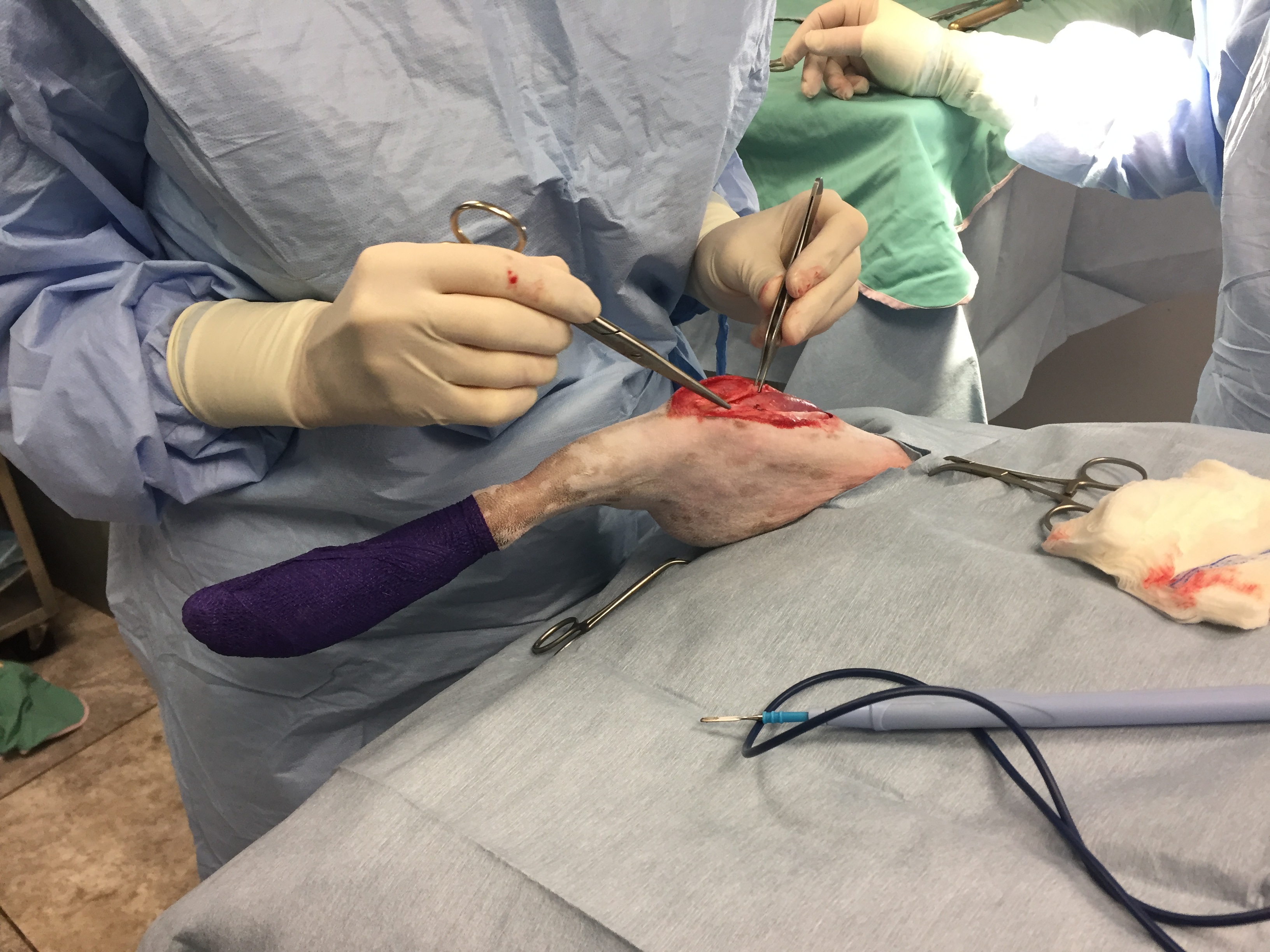 The procedure was several hours long and was guaranteed to slow Nugget down for several weeks. In surgery, the patellar ligament to the tibia is transplanted to its proper location. The groove in the femur is then deepened so the patella will stay in place. The capsule around the joint is then tightened to prevent the patella from luxating again. A lot has to go into this procedure to prevent it from happening again.