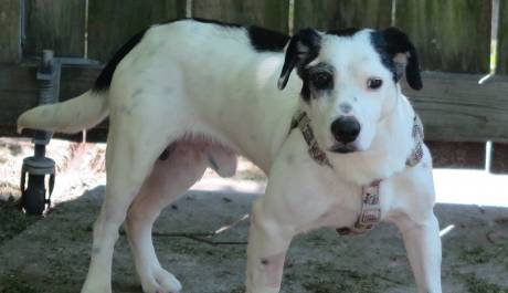 Petey has been working nonstop with his physical therapist on his mobility and socializing skills. He now enjoys his walks and laying in the warm sunshine. He has also learned to let you know when he needs to go to the bathroom. He is making huge progress in his trust with humans.