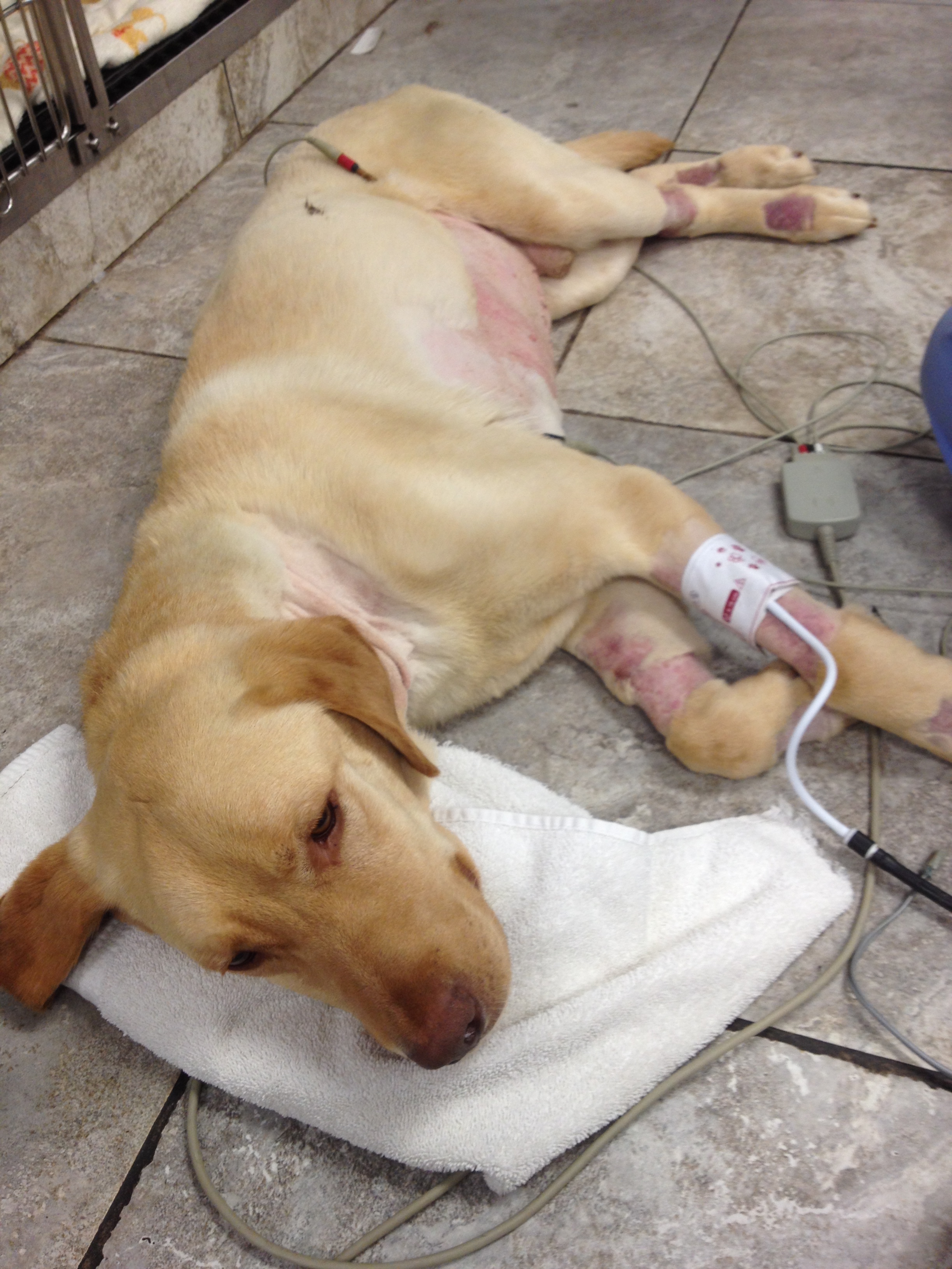 Remi's bills were higher than you could ever imagine. He spent almost three weeks in ICU fighting for his Life and had over a dozen transfusions. He is alive today because of the Specialists being on top of his medical care every step of the way. He had a team of Specialists working on him 24-hours a day during that time. On top of all that, he needed a constant supply of blood every day. We are still working on paying down our bills from his stay. Please, donate anything you can so we can help more abused animals. I was going to say, "So we could help more dogs like Remi." That is something I never want to experience again.