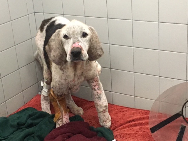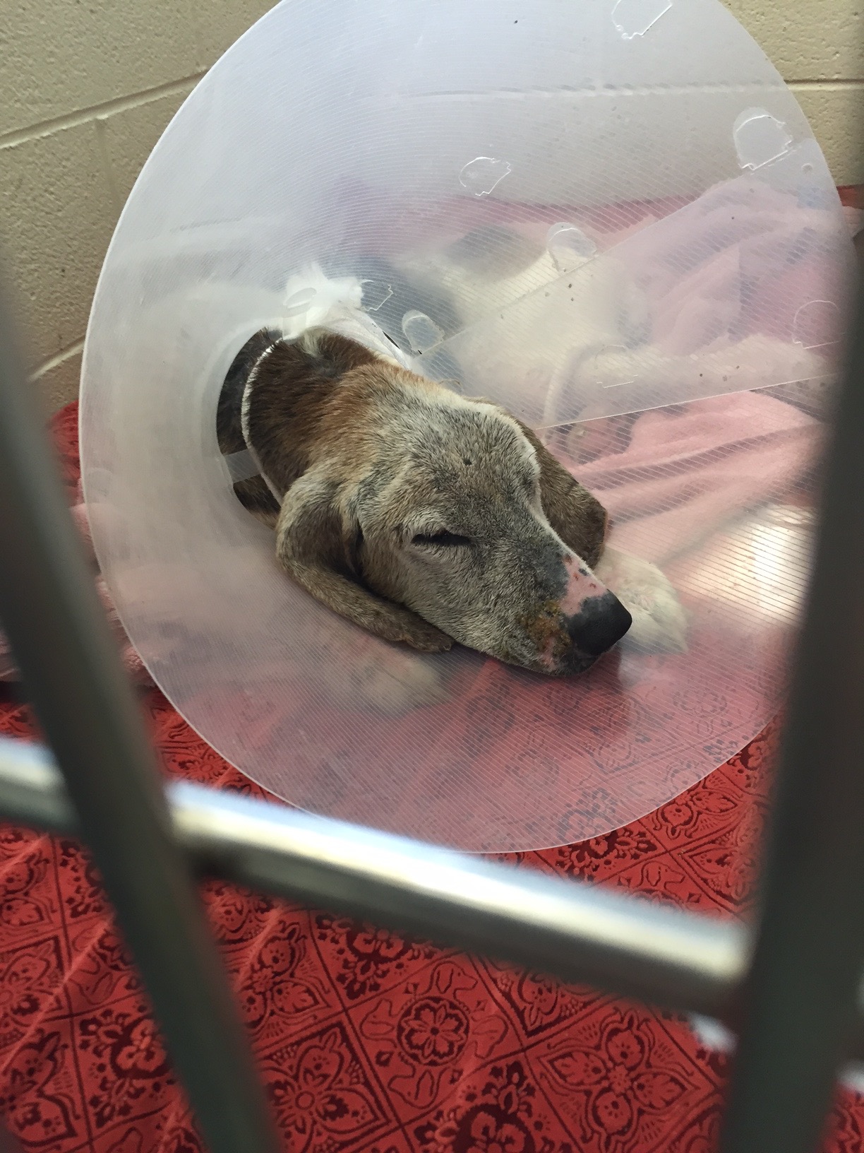 Today was one of the hardest days I have had to experience in ten years of saving Abused Animals. We had to say Good-Bye to dear Scarlett. The infection she had on her elbow came back with a vengeance. This time, it was even more resistant than it was months before. The Skin Disease she had improved 1000%. Her fur was coming back, and she felt great and was HAPPY. The problem is that the medications to help her skin, prevented her wounds from healing and the bacteria kept growing. If we took her off her Skin Medications, her wounds would begin to heal, but her Skin Disease would flare up along with the worst itching you could ever imagine. Each time we change her antibiotic, she becomes resistant to it, and now she .has a Super Bug that we cannot treat with anything. Within days of stopping some meds and changing others, our happy girl was going to be miserable. It was going to be a downward spiral that was inhumane for me to put her through, given what I already knew.