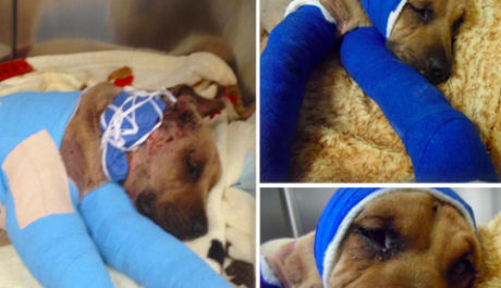 Sweet Sparrow has taken a turn for the worse and has been transferred to a Critical Care Veterinary Hospital in Charleston, SC. His body has become anemic from loss due to seeping from the wounds, vasculitis and systemic inflammation. He is getting a transfusion to compensate for the loss. His bloodwork is also showing signs of sepsis. The good news is that his bone marrow is keeping up so far with the bacterial infection from his wounds. The next 48 hours are going to be critical for him. We are doing everything we can to regulate the fluid loss and infection. He is now in a facility where he has a team of Critical Care Specialists to monitor his every second. His heartbeat has finally come down to a high normal. His temperature has become stable and is now up in the normal range where it was extremely low before. This sweet puppy reminds me in so many ways of Freckles. The symptoms he is having are almost identical to the first 48 hours we had Freckles. He is being treated by the same Specialists that saved Freckles.