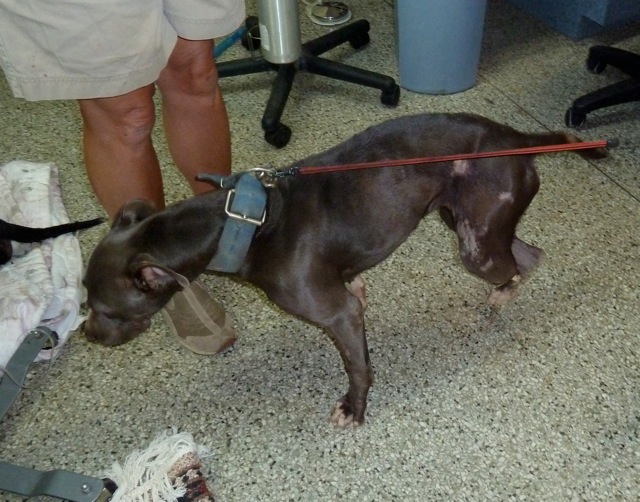 Sweetie is just about done with her HW treatments and has responded well to all of the shots. She is a beautiful tiny blue pit. We are observing her all this week with other dogs to make sure she will be fine with them. Her kennel is right next to other dogs and she has been fine with them but we like to make sure she will be fine when she has lots of time to play with them. She has fully recovered from her leg amputation and is getting around great.