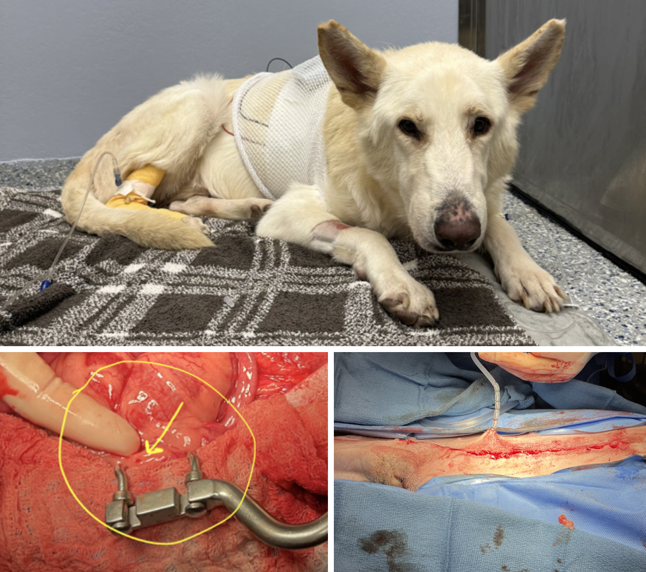 He found the tiniest ulcer in Timber’s intestine — but that tiny ulcer had made him critically ill. Drains were placed, a feeding tube inserted, and now Timber is fighting hard to recover. He’s on strong antibiotics and pain meds, and while his blood values are still off, he’s holding on.