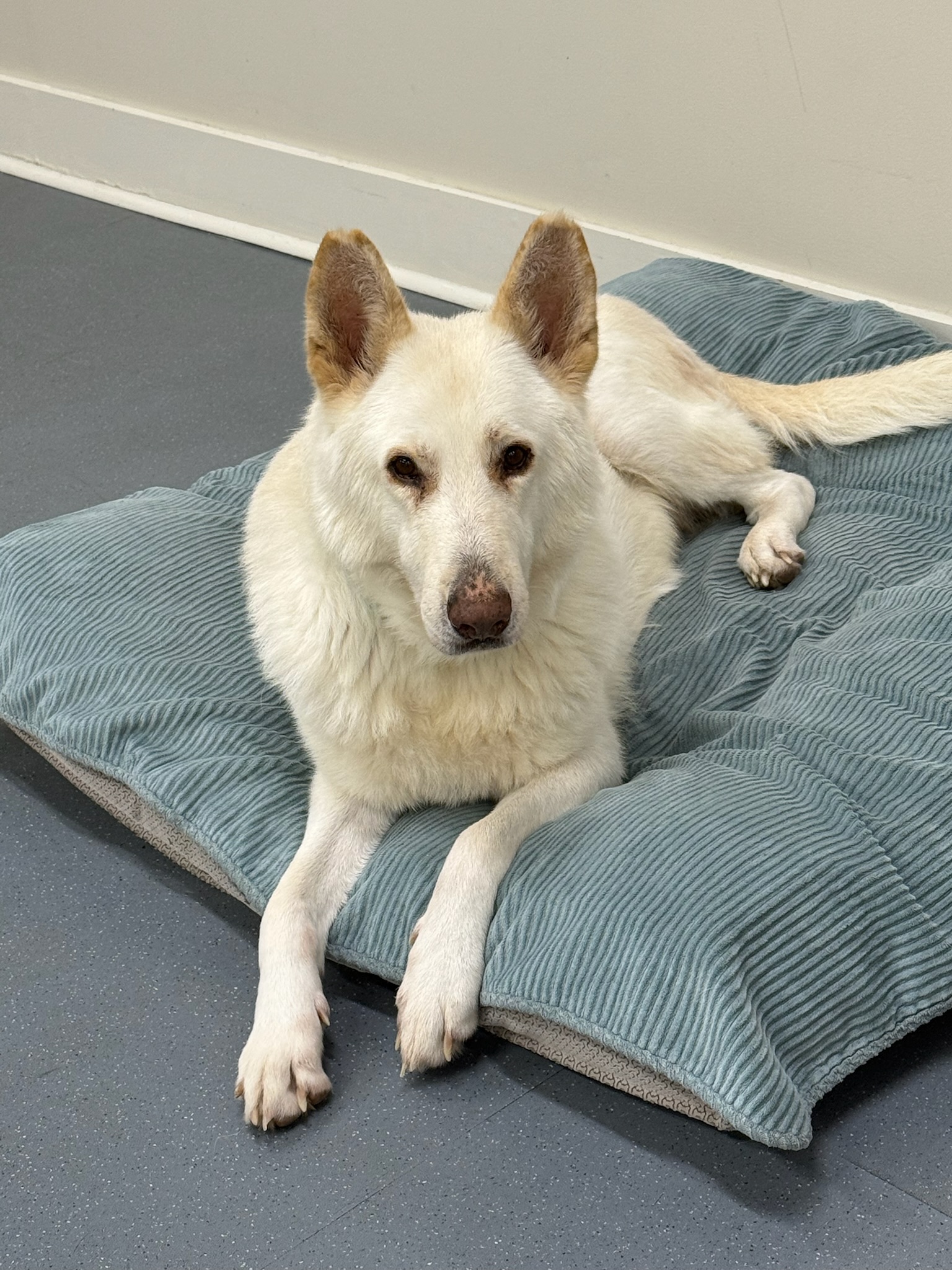 Timber is doing AMAZING. After weeks of ER visits trying to figure out his regurgitation issues, we are finally feeling confident that he is on the right medications. He is not just stable — he is thriving. His fur has fully grown back, he is at his best weight, and he runs, plays, and exercises nonstop. He acts like a two-year-old, even though vets now believe he is closer to five — a huge difference from the 10+ years we originally thought.